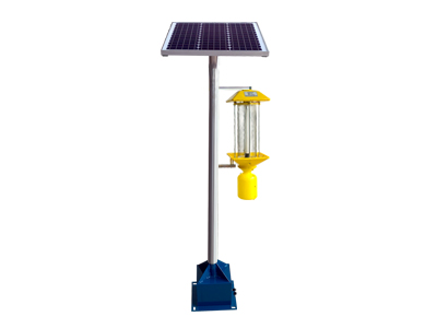 太陽能殺蟲燈是利用害蟲趨光性進行誘殺的一種物理防治方法。風吸式殺蟲燈是利用害蟲較強的趨光、趨波、趨色、趨性信息的特性,將光的波長、波段、波的頻率設定在特定范圍內,近距離用光、遠距離用波, 加以誘到的害蟲本身產生的性信息引誘成蟲撲燈,燈外配以強力風機,使害蟲落入燈下的接蟲袋內,達到殺滅害蟲的目的。